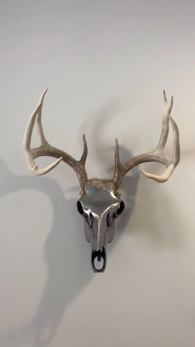 A decorative antler sculpture with ring for wall mounting. Can stand alone as wall art or serve as a functional hook.